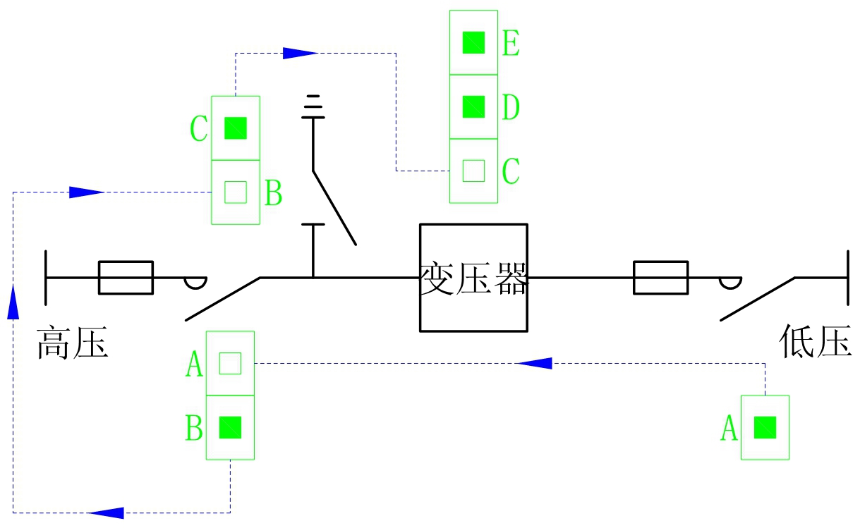 1.低压侧断电:断开低压侧开关,释放钥匙“A”。