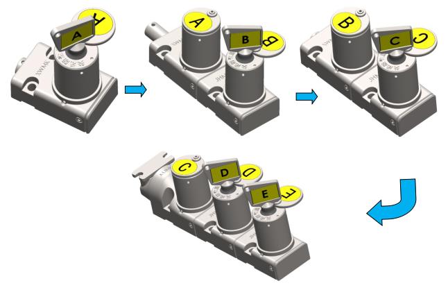 2.高压侧断电:将释放的钥匙“A”插入高压侧开关对应模块解锁,高压侧开关断电,释放钥匙“B”。